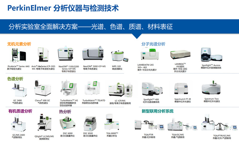 珀金埃尔默公司成立于1937年,是全球领先的科学仪器和解决方案供应商。我们提供广泛的科学仪器和技术,包括光谱仪、质谱仪、实验室自动化设备、液相色谱仪、气相色谱仪等。广泛应用于化工科学、材料科学、环境科学、能源等领域,为全球科研、制药、医疗、环保、材料等行业提供关键支持。公司秉承“客户为本,质量至上,技术领先,做一流产品”的质量方针,以科技创新为动力,以质量稳定为根本,以服务诚信为原则,坚持自主创新,精益求精,不断推陈出新,发展壮大。